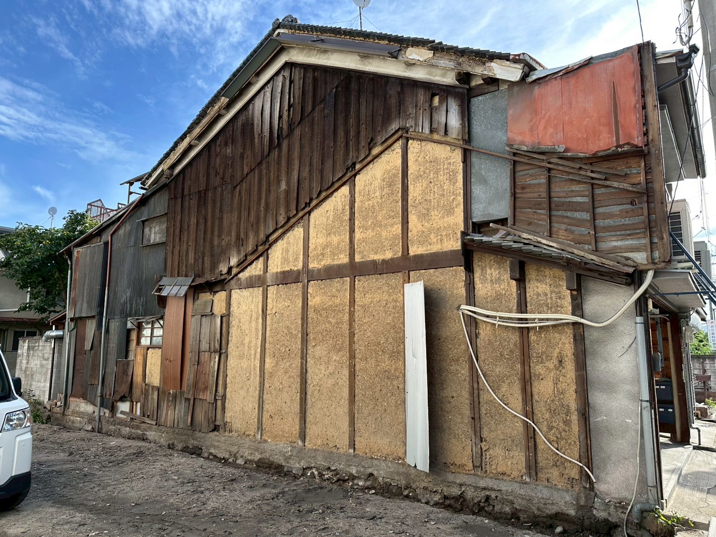 こちらの建物は元々隣地に建物があり、その建物を解体したことにより壁土が露出し雨水が直接壁に降りかかる状態になってしまったので綺麗にしてほしいとお問い合わせいただきました。