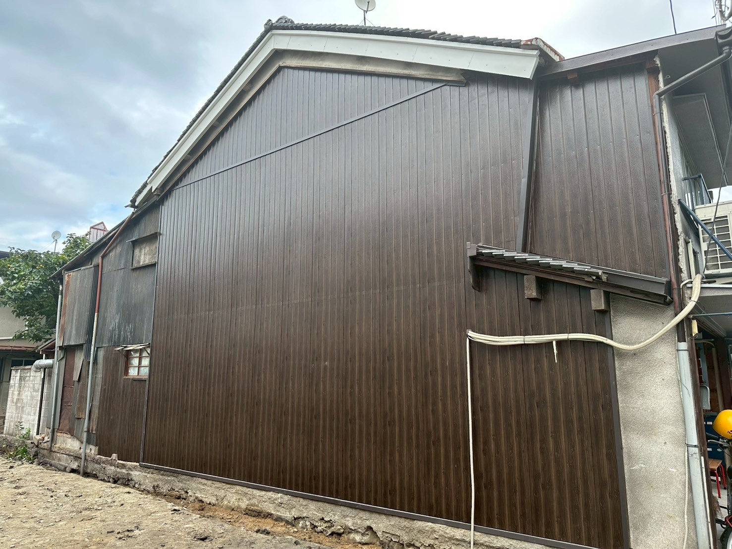元々張ってあった不要な木材などを綺麗に取り除き、新しく下地を整えてヨドプリント鋼板で仕上げました。