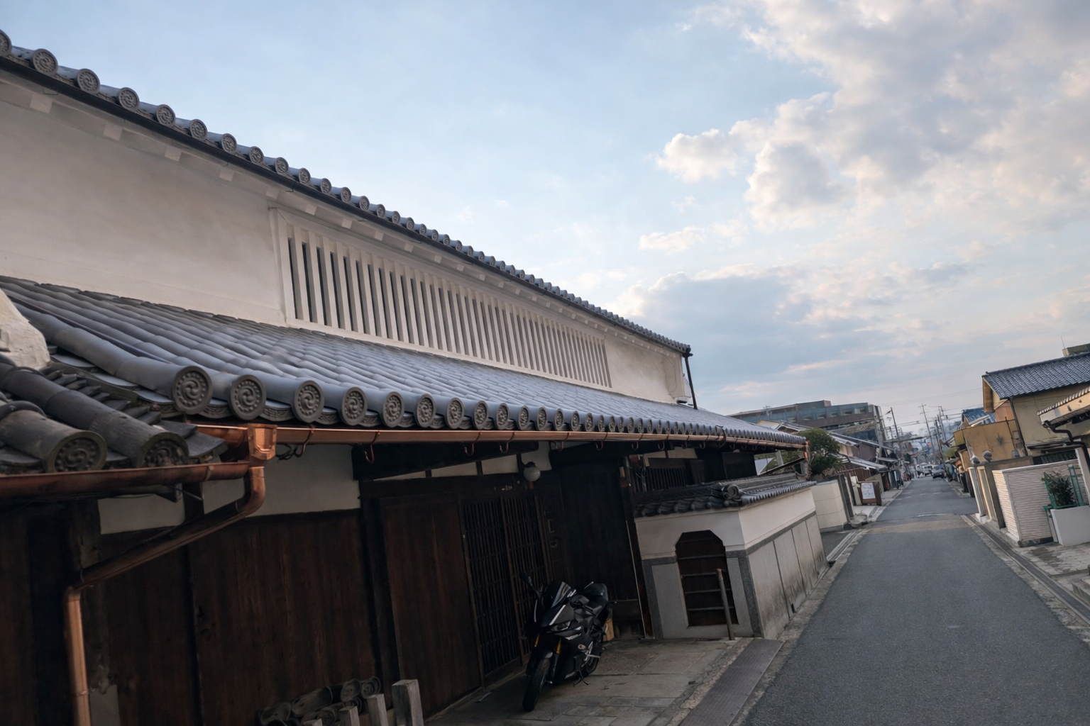 こちらは歴史的な古道が通る場所に建ち旧家屋が軒を並べる街並みの中にありお客様はその雰囲気を大切に思われ飛鳥2号瓦という本葺き風の瓦を選定されました。